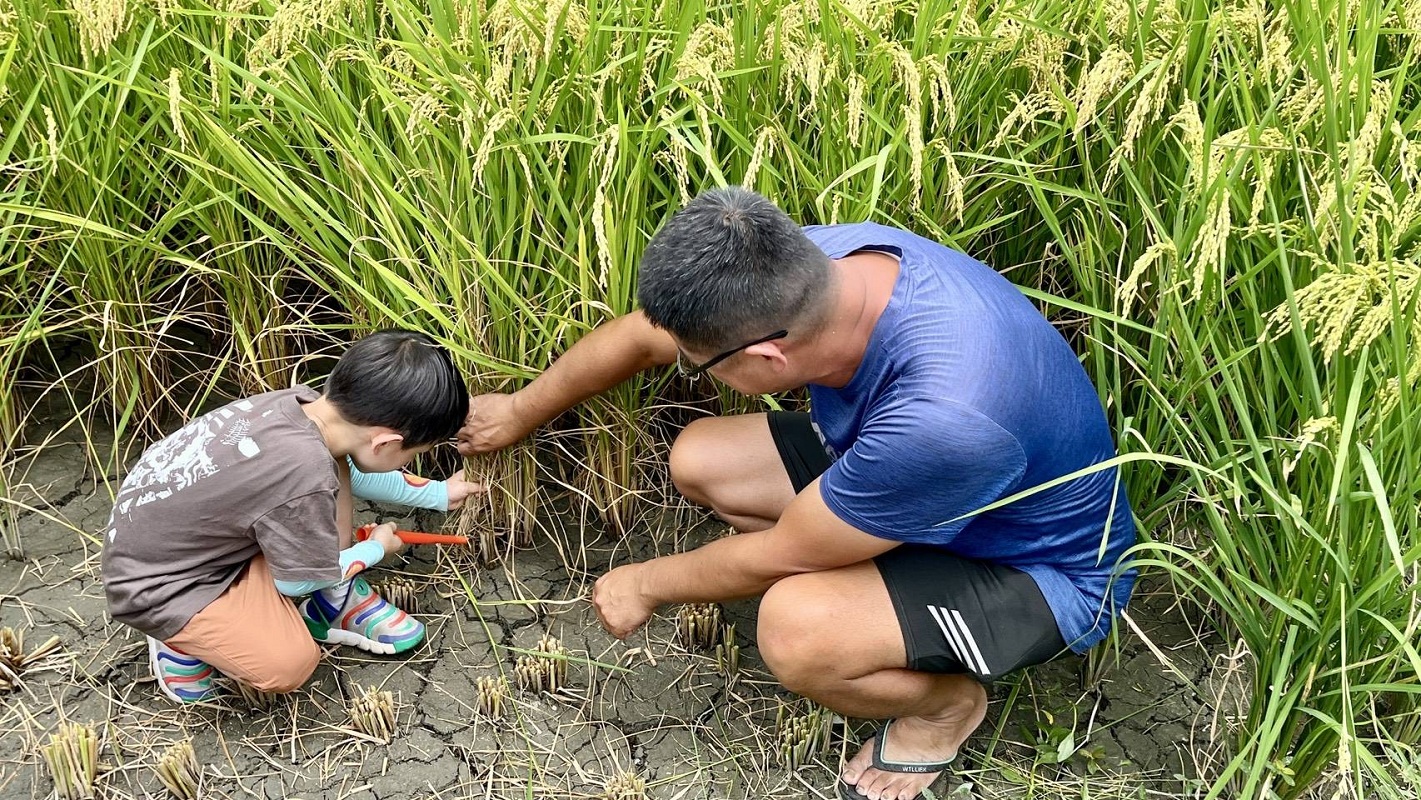 都市的遊客及學童親自下田,學習割稻及體驗農村環境