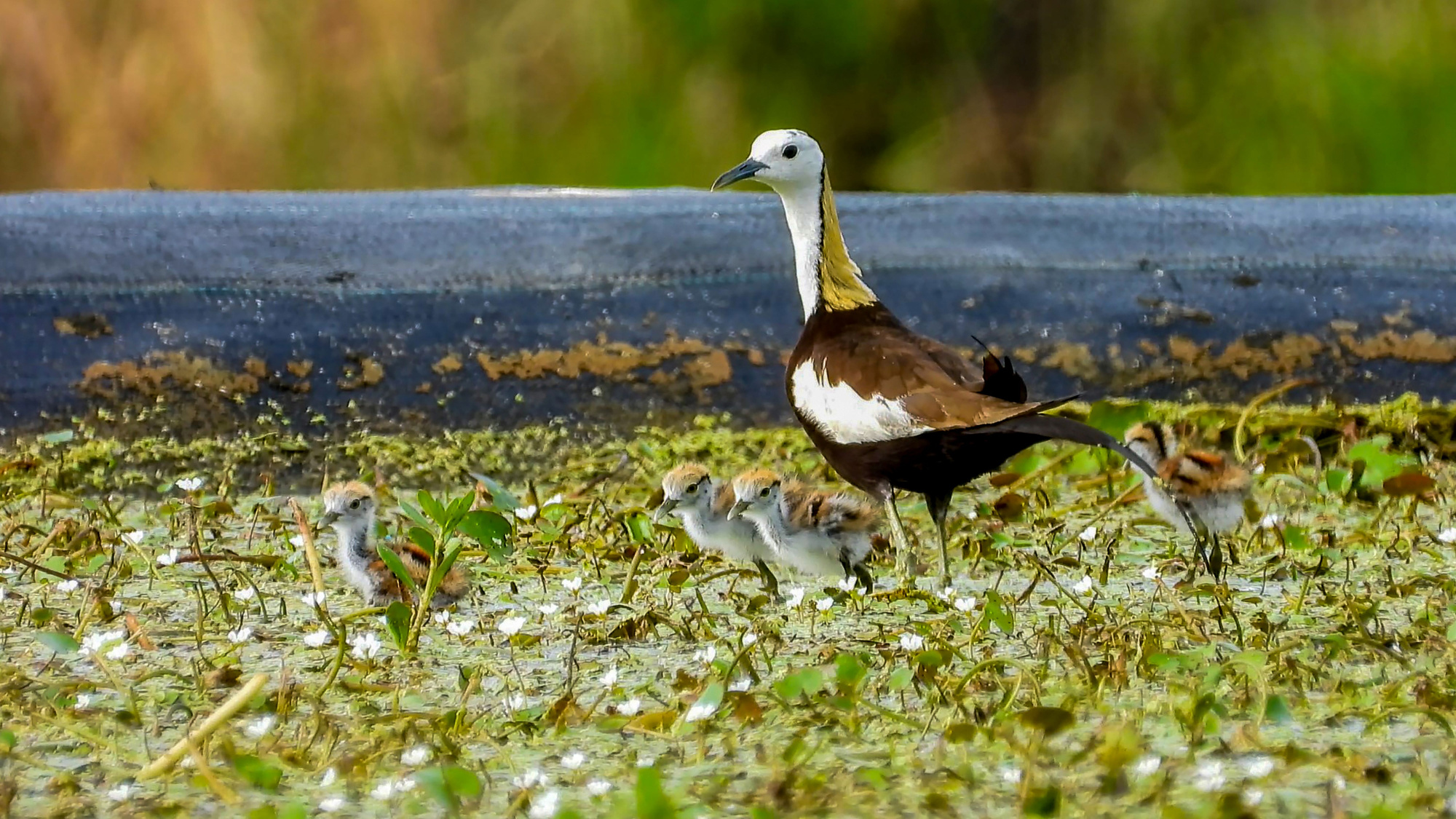 友善耕作水蓮田區,凌波仙子-水雉優雅漫步(邱秀梅提供)。 |
