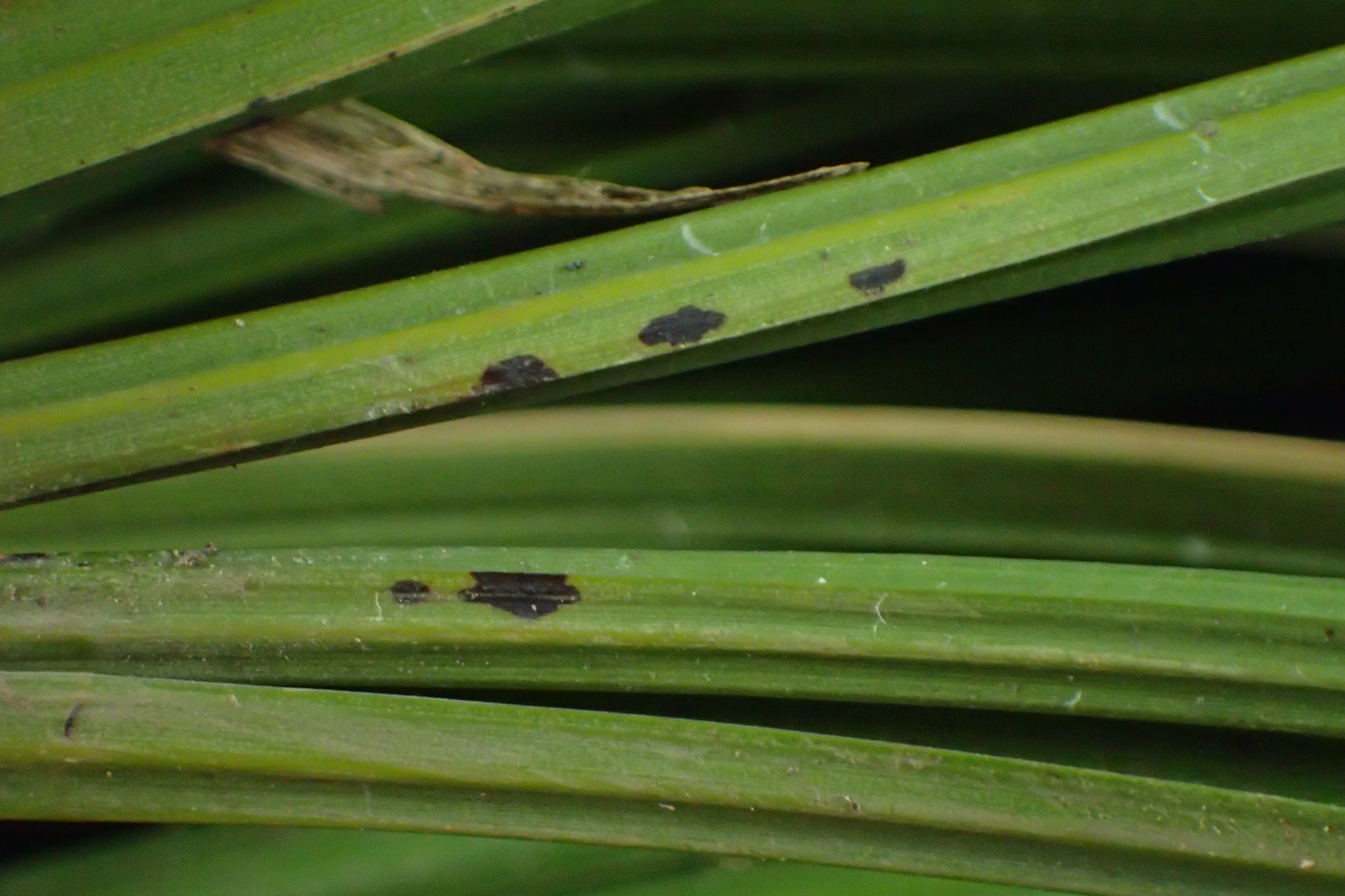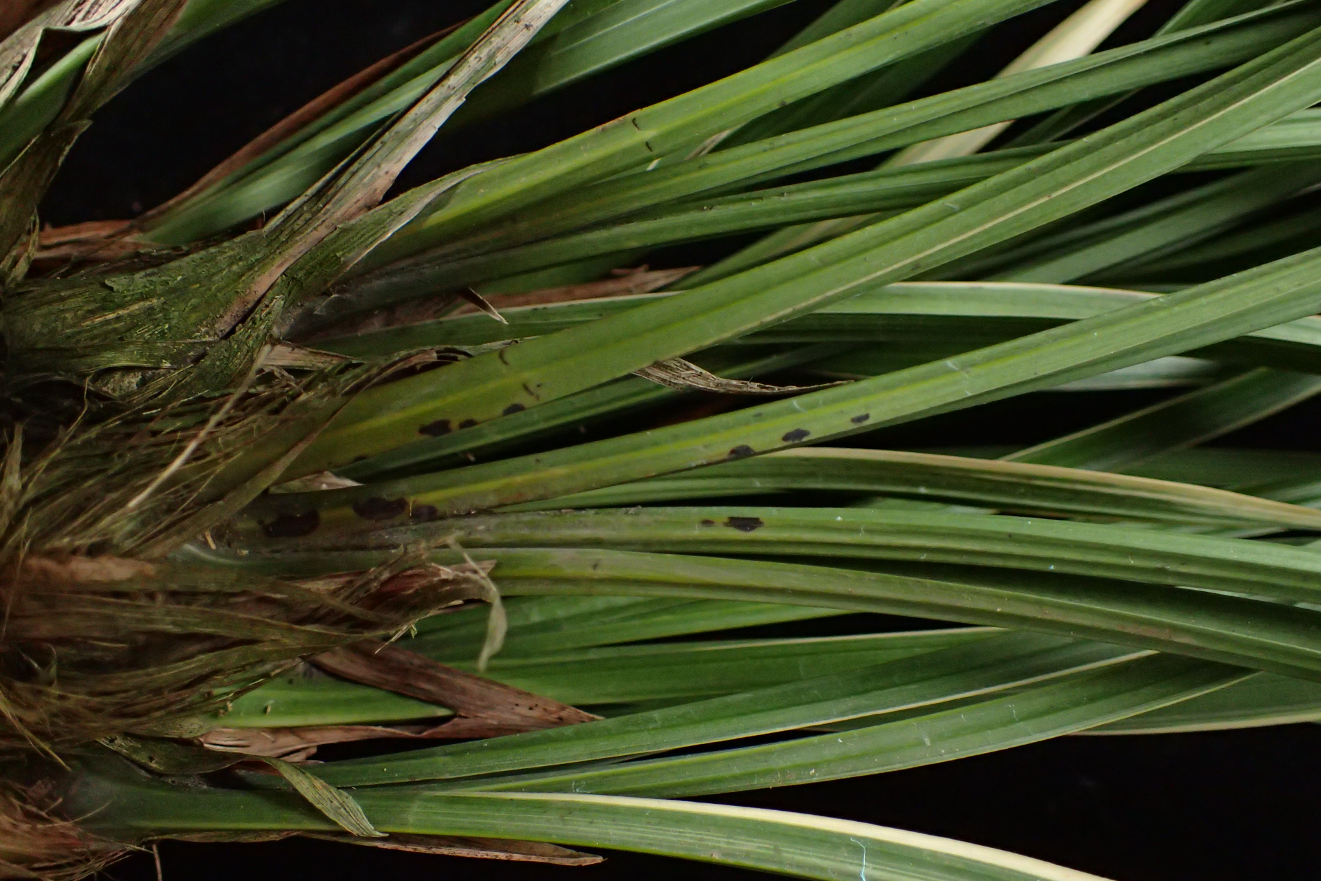 | 作物被害描述 | 樣品:國蘭1株(四季蘭彩紅),葉基部有黑色斑點。 |