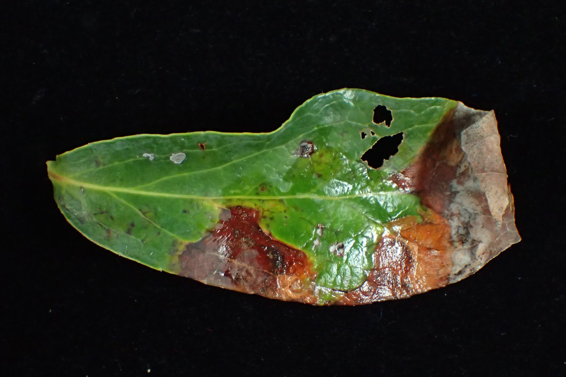 | 作物被害描述 | 樣品:第3區藍莓葉1袋,上有褐色斑點。 |